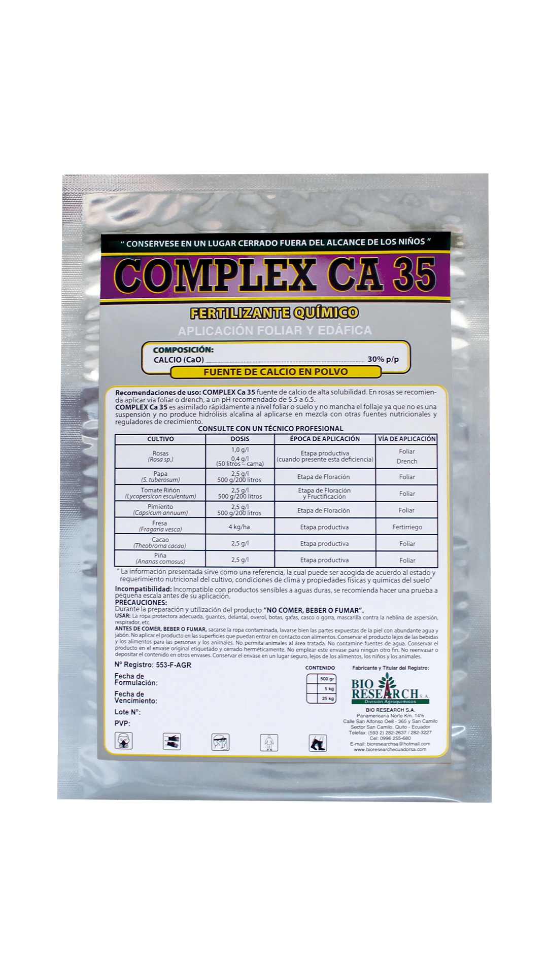 Fuente de calcio en polvo como carboxilato de calcio para aplicación foliar y/o edáfica
