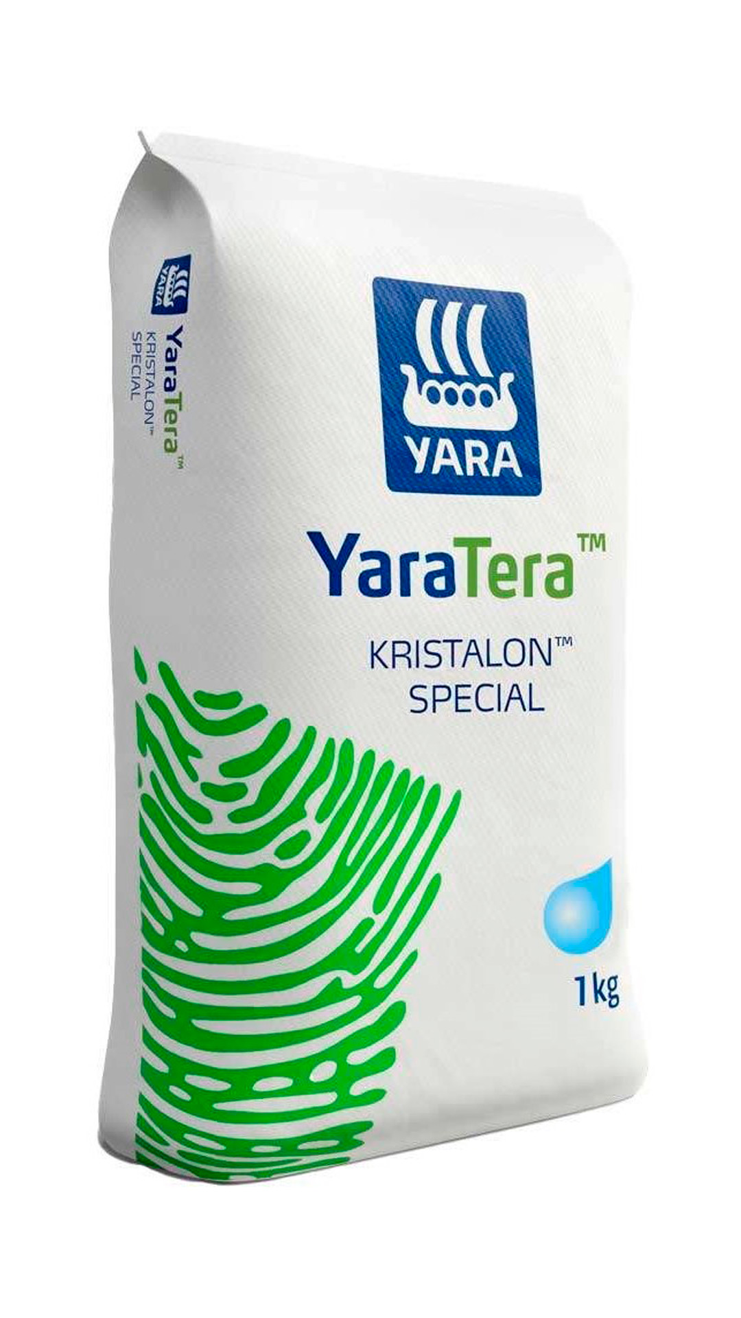 Yara Tera Kristalon Green Label es un NPK totalmente soluble en agua que contiene 18 % de Nitrógeno, 18 % de Fósforo, 18% de potasio y micronutrientes ( B, Cu, Fe, Mn, Mo y Zn).